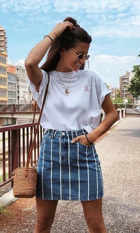 Para além das passarelas, o retorno da minissaia jeans já vem dominando o street style internacional. As fashionistas estão apostando na peça combinada com trench coats longos, camisas de botão com babados, lenços no cabelo, óculos espelhados e sapatos mais pesados para equilibrar o visual mini.